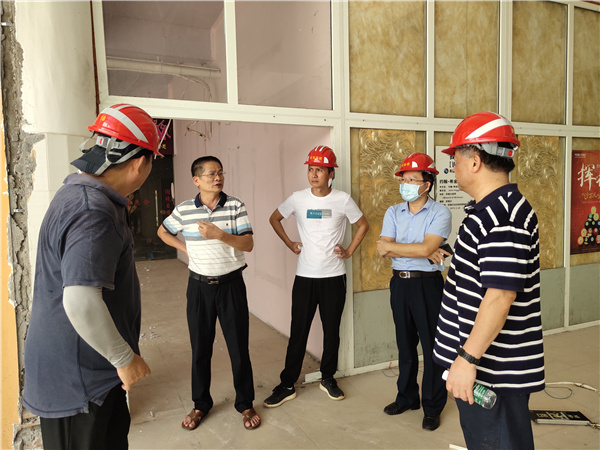 在校园人车分行项目的施工现场,黄景贵仔细查看了项目施工情况,对项目整体效果和已按期完工部分予以肯定,并提出了一些改进意见。