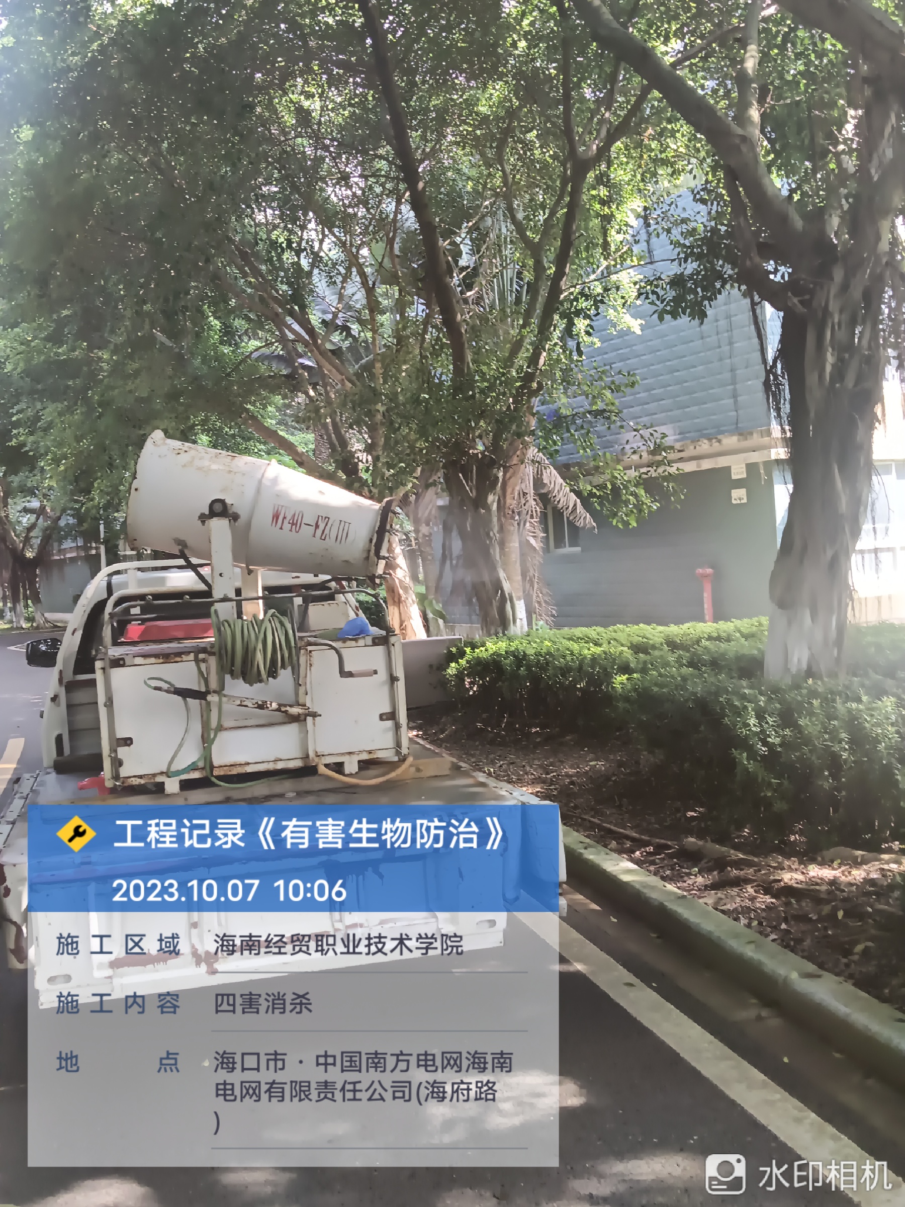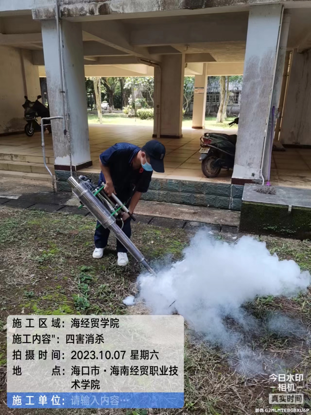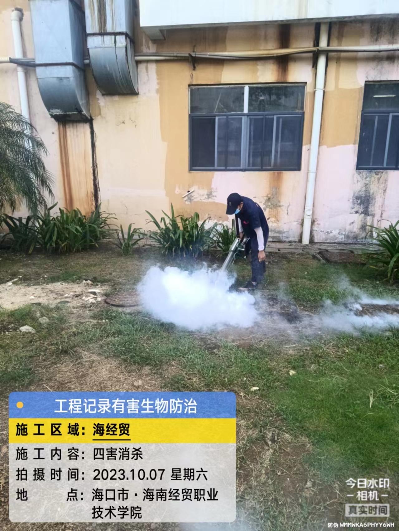 为落实省教育厅关于节后登革热和急性出血性结膜炎(红眼病)防控工作视频部署会议精神,确保校园安全稳定和师生员工身体健康,学院于10月7日委托第三方对学院行政楼、教学楼、学生宿舍、图书馆、教职工和学生食堂、实训中心、综合楼、体育馆、教师公寓外围周边环境和下水道开展“除四害”消杀工作,共使用灭鼠药物新灵溴鼠灵30000克投饵消杀,灭蟑螂药郁康15%氯氰残杀威5000ml热烟雾消杀,灭蚊和灭苍蝇药物环卫乐12%高氯毒死蜱4000ml超低喷雾消杀。